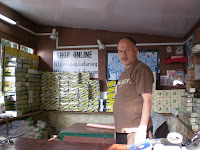 Here's Santosh,the Chowkidar, outside his post, Om at his Tea Stall and the priest doing the morning Homatherapy.