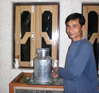 Dilip Bhujel serves as the local milkman for the Makaibari dairy. Dilip has been working at the Makaibari house for over 14 years and has a wife and 2 children, Darpan and Diksha, pretty good students I hear! His wife, Manju, manages one of the child care creches at Makaibari. Dilip is an excellent employee who puts great care into his work. Although not an official cook, he told me he enjoys cooking food, growing flowers and watching Channel Nepal on TV! He volunteered to be the milkman and comes each morning, collects the milk and sells it to 10 - 15 regular customers in Kurseong village. He gets a nice cut of the proceeds and it's a great example of how interconnected life is at Makaibari.