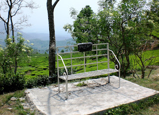 Over one thousand people live in the seven villages of Makaibari. Over 600 work on the plantation. Approximately 3 - 4 members of each family find employment at Makaibari. The remainder work in neighbouring towns and villages and many are retired. Over the years, some of our faithful employees pass on to the next world. For each, a bench is erected, a place of repose, surrounded by the beauty of the garden. I passed several in my wanderings - here's one that remained with me.