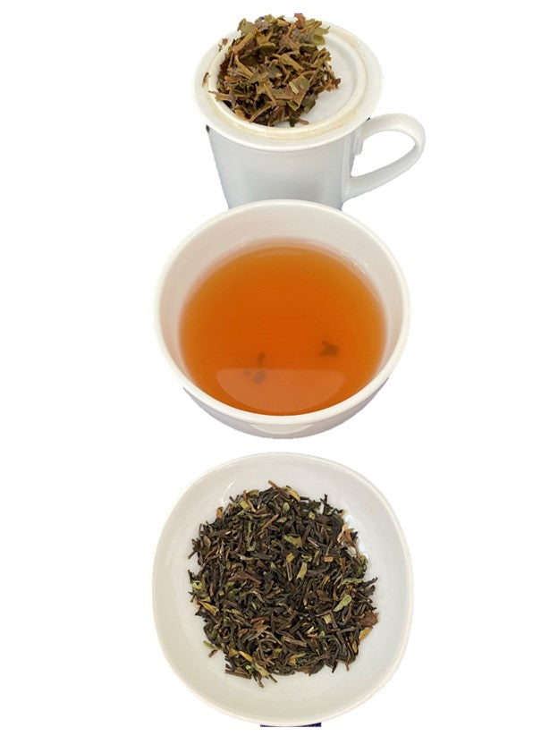 After the bushes have been dormant all winter long, the first showers around February or March stir the bushes and the early spring leaves produce a glorious leaf. The first day of plucking on the estate is called Paila Patti (First Leaf) and celebrated with gifts to workers and a blessing of the estate and season ahead. 1st flush is astringent - crisp and sharp - and enjoyed best at a short steep without milk or sugar. The infused leaves have a distinct greenish hue, a mark of quality, sometimes mistaken for a green tea which is incorrect. For those who need slightly more body to their Darjeeling, 2nd flush or Autumnal would be a better option. 1st Flush is my daily cup all year round.